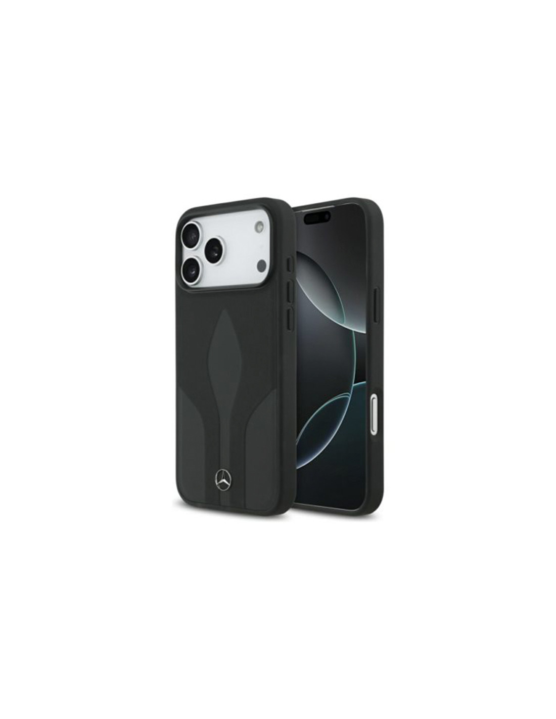 Funda Mercedes iPhone 17 Pro Max The Move MagSafe negra en piel sintética premium. Diseño exclusivo Mercedes-Benz, protección reforzada y compatibilidad total con carga magnética MagSafe.