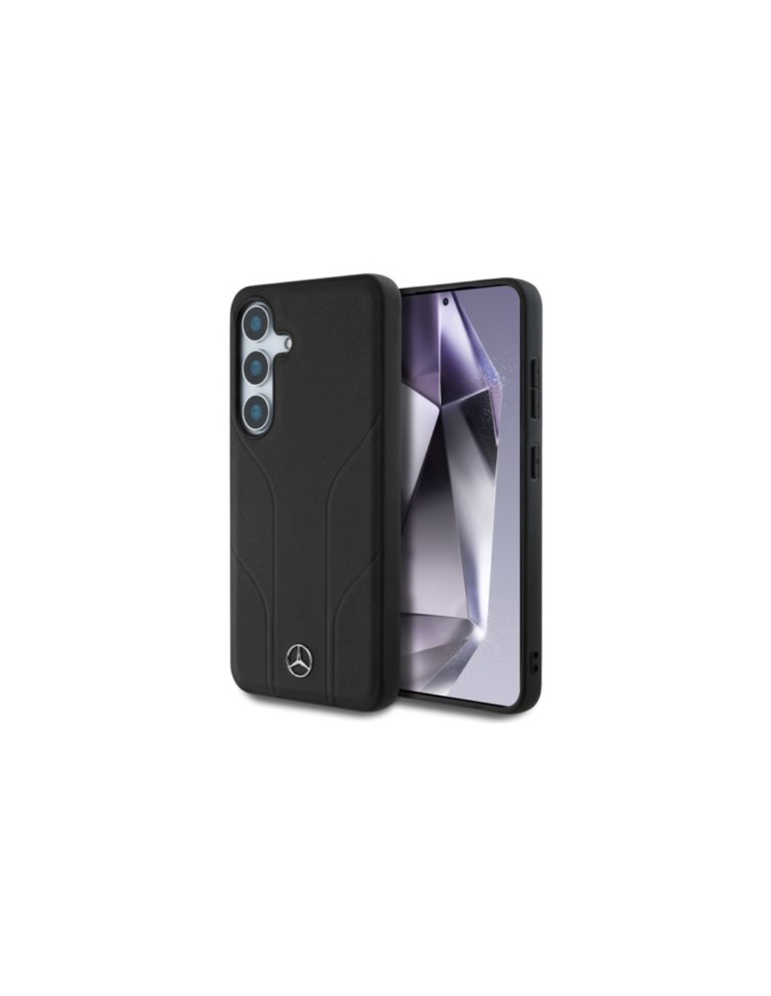 Funda Mercedes Samsung Galaxy S25+ Debossed Lines MagSafe negra en piel sintética premium. Diseño exclusivo con líneas grabadas, protección reforzada y compatibilidad total con carga magnética MagSafe.