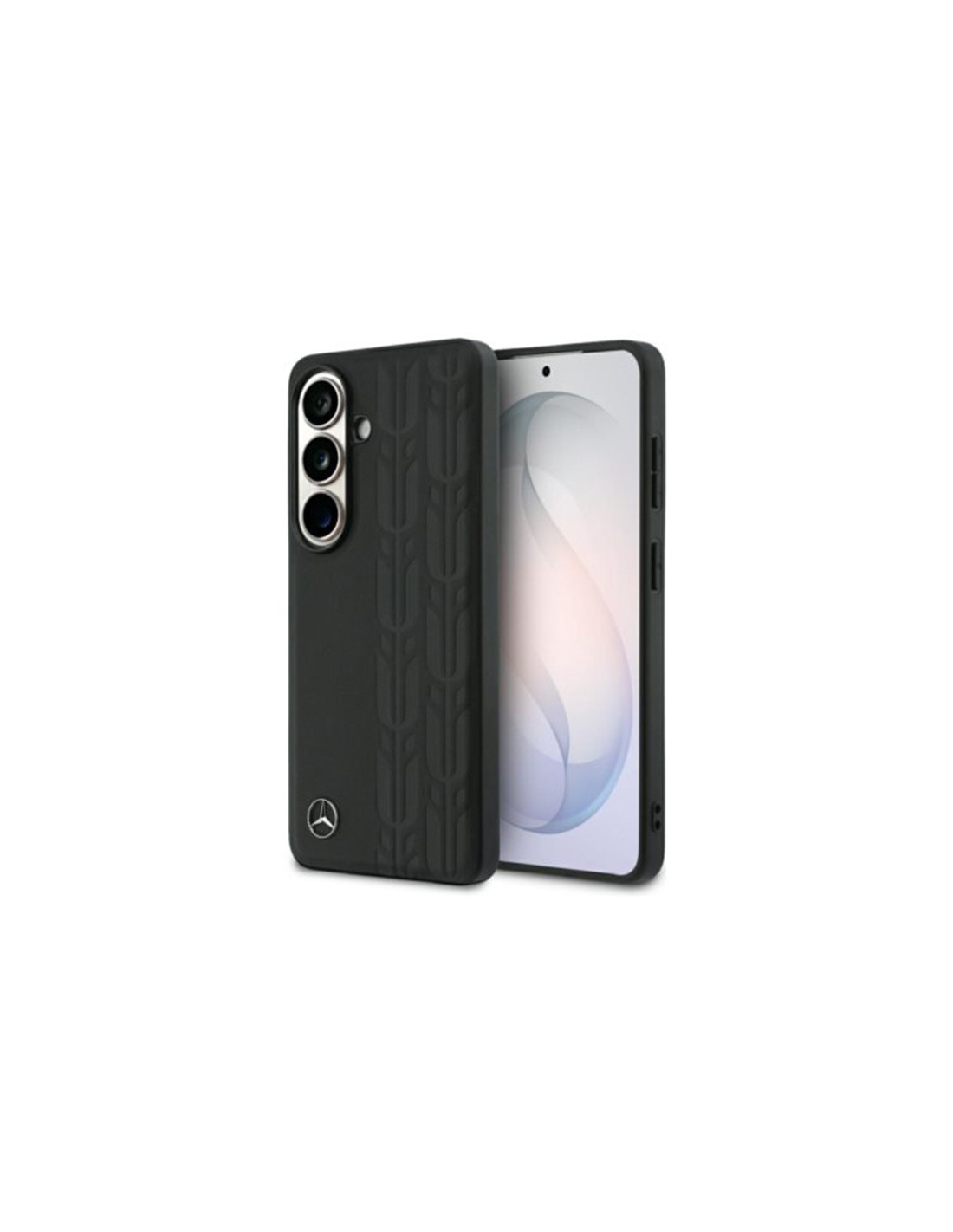 Funda Mercedes Samsung Galaxy S26 Laurel Leaves MagSafe negra fabricada en piel sintética de alta calidad. Protección premium con diseño exclusivo Mercedes-Benz Collection y compatible con carga magnética MagSafe.