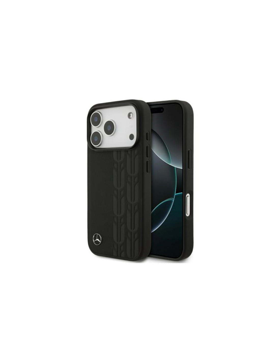 Funda Mercedes iPhone 17 Pro Laurel Leaves MagSafe negra en piel sintética premium. Diseño exclusivo Mercedes-Benz, protección reforzada y compatibilidad total con carga magnética MagSafe.