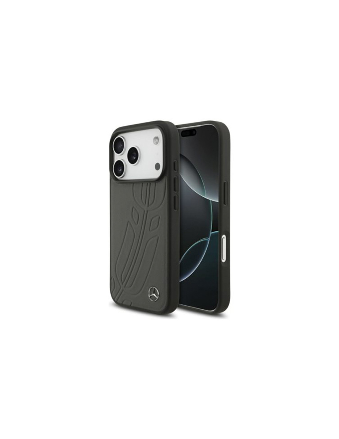 Funda Mercedes iPhone 17 Pro The Move MagSafe negra en piel sintética premium. Diseño exclusivo Mercedes-Benz, ajuste perfecto y protección reforzada compatible con carga magnética MagSafe.
