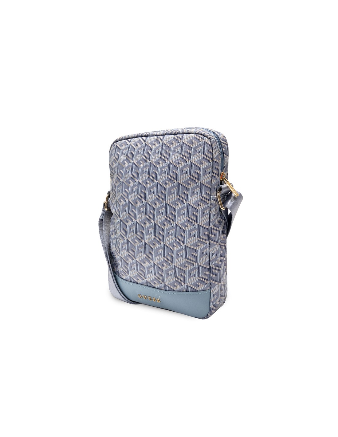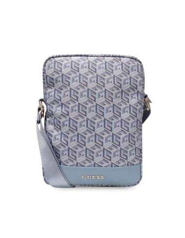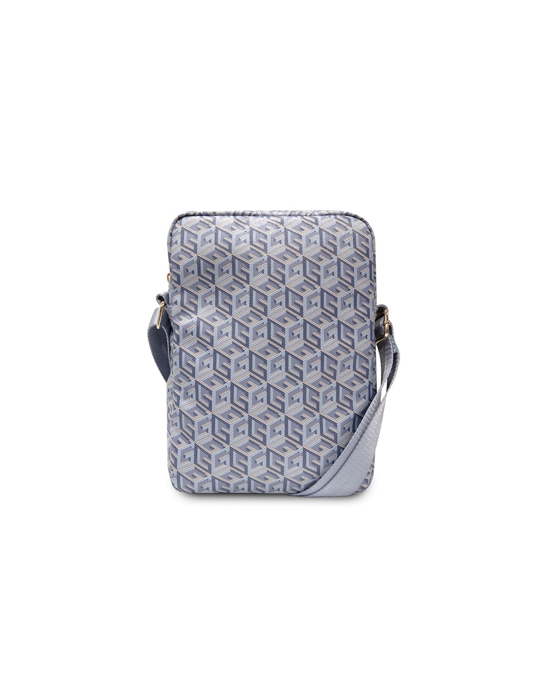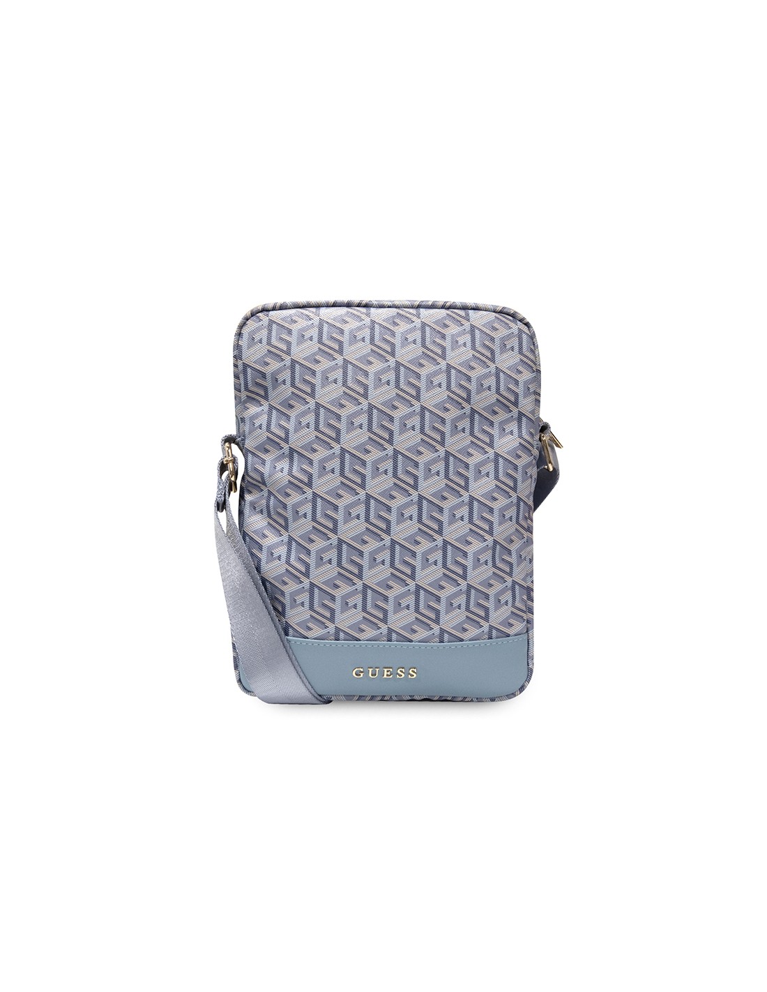 Design: G-Cube Stripe; Tipo de produto: Bandoleira para tablet ou laptop de 10" ou menos; Material exterior: Couro sintético de alta calidad; Material interior: Poliéster e nylon; Tamanho: 27 x 20 x 5 cm; Cor: Azul; Correia para ombro ajustável; Compartimento principal fechado com zíper; Produto sob licença GUESS