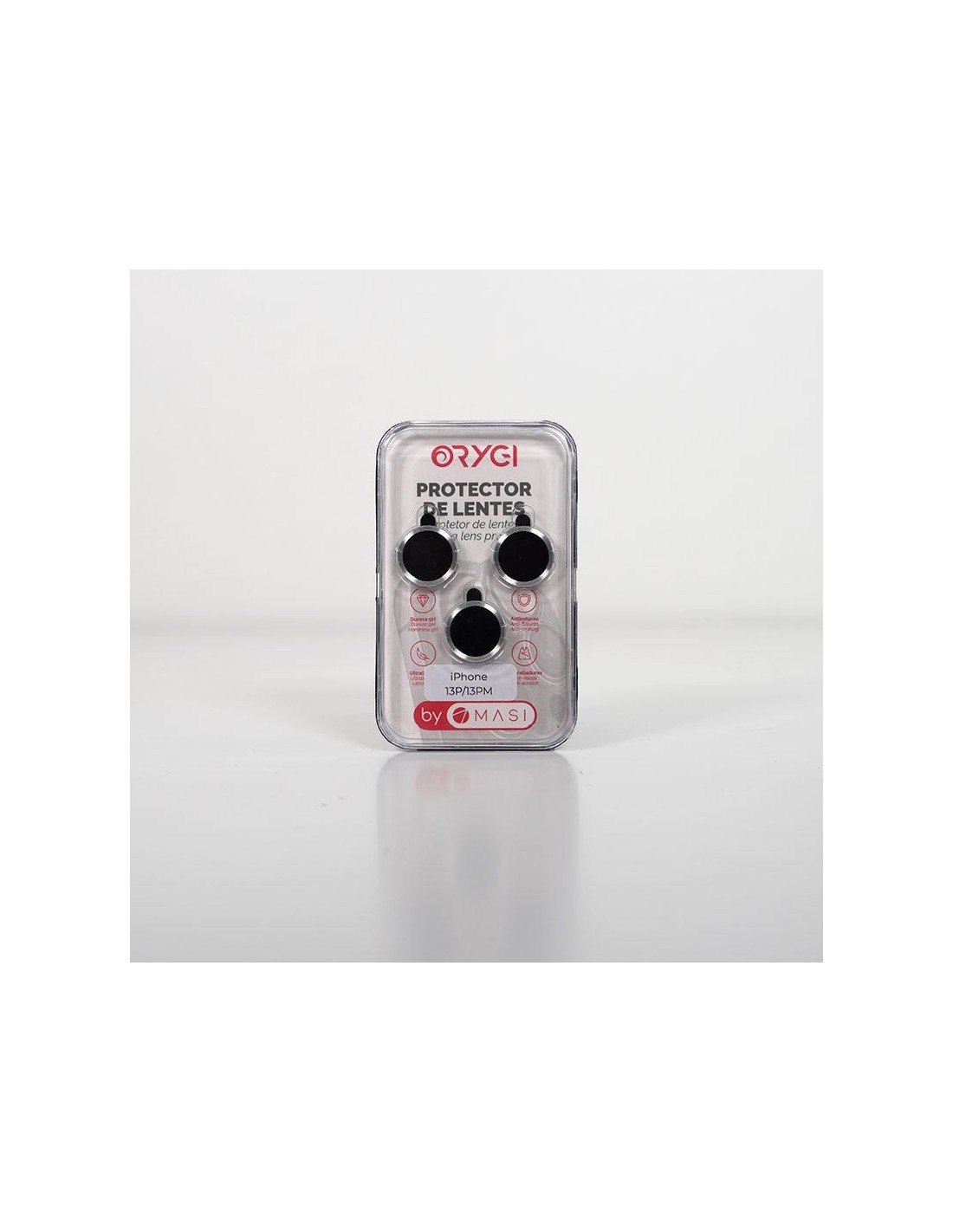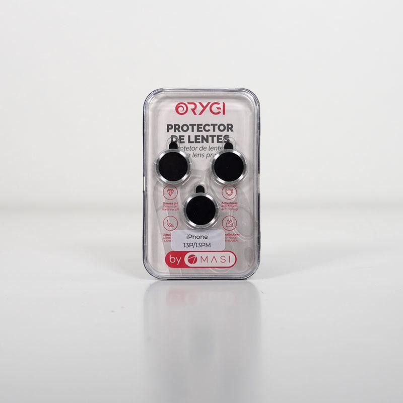 Función: Protección de lentes smartphone; Modelo: iPhone 13 Pro y iPhone 13 Pro Max; Materiales: Cristal templado y aluminio; Color: Plata; Características: Alta resistencia a golpes. Protección completa de la lente. Sin interferencias con el flash. Fácil instalación
